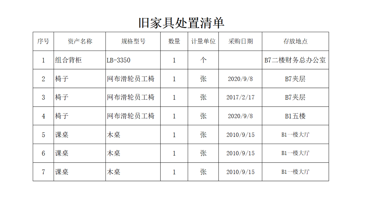 2.家具类(清单见下表)